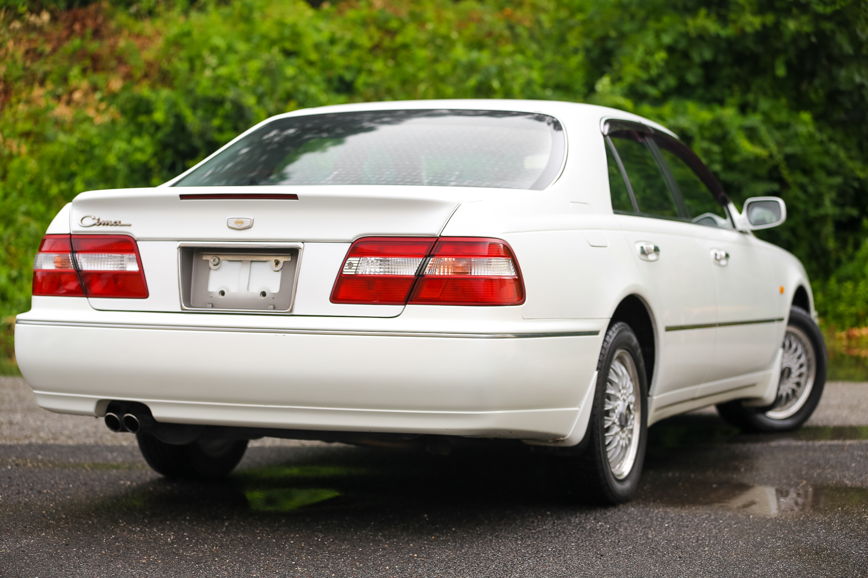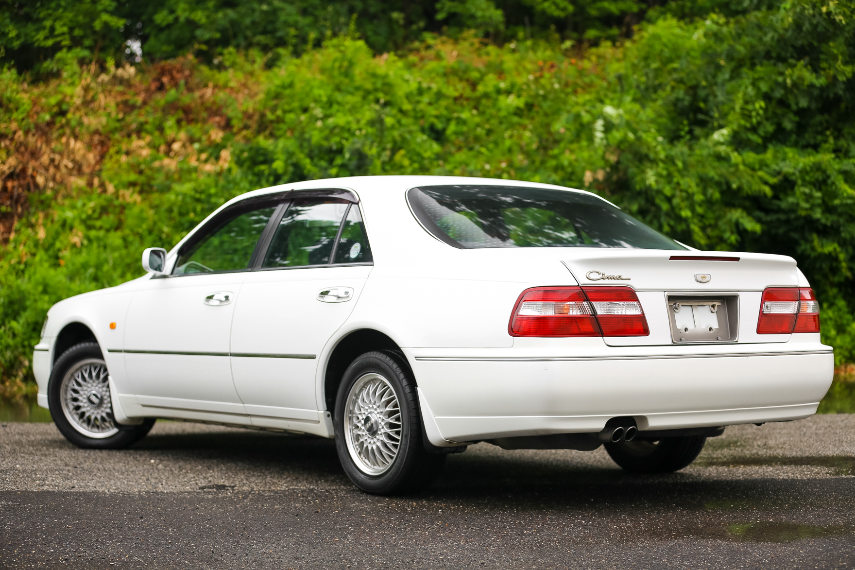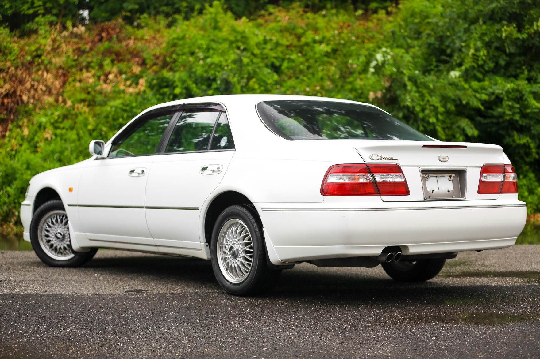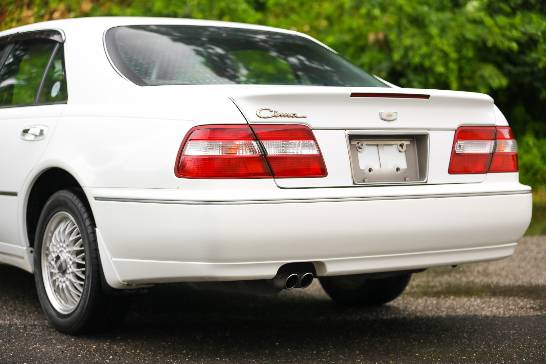 The car has some scratches on the wing. It was purchased from a an older gentlemen in Japan who is the original owner. Customer came to us looking for a white V6 Turbo Cima with low miles.. We got exactly what he wanted and we are excited to bring this beauty for it's new owner in Pennsylvania.