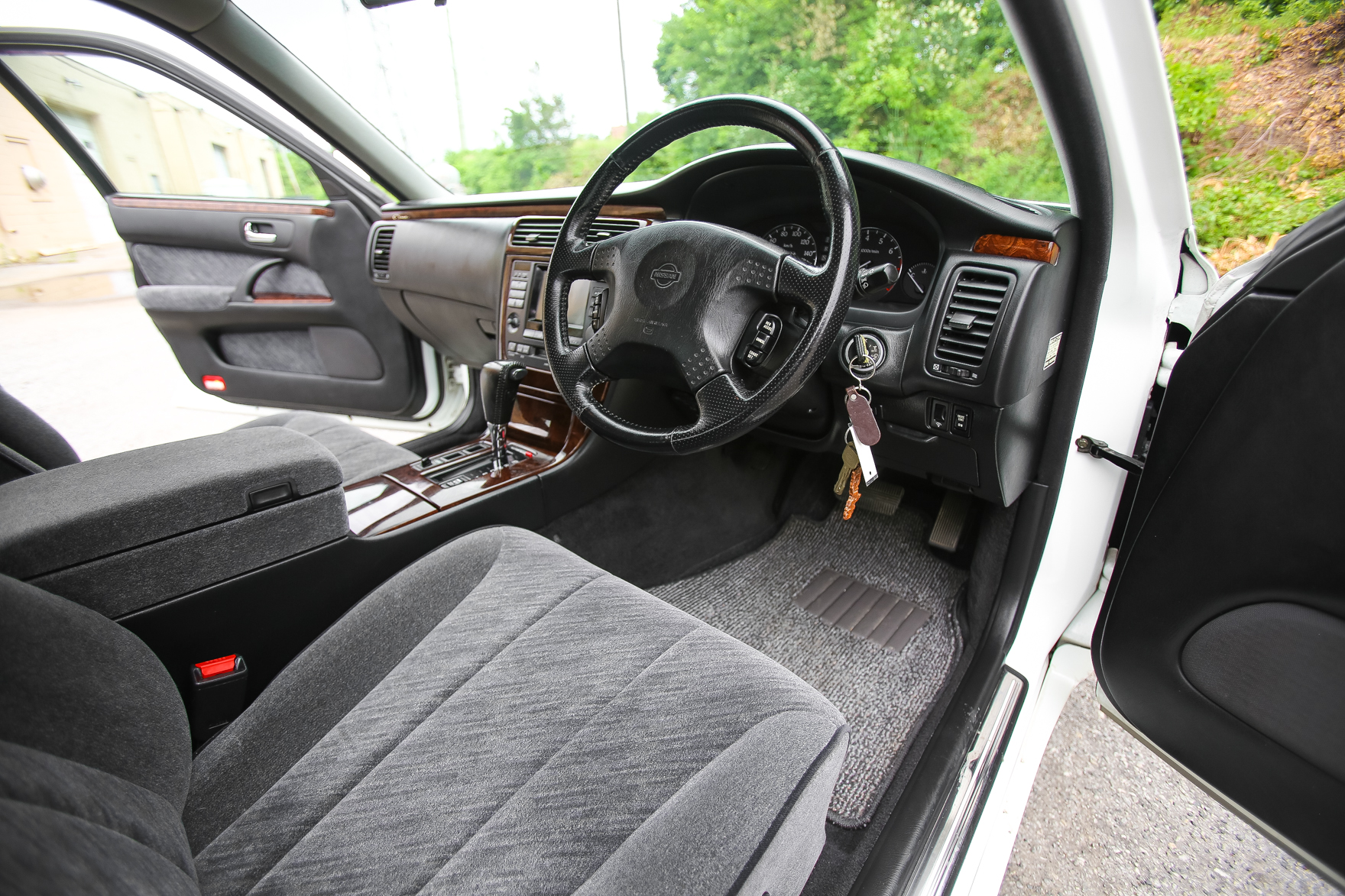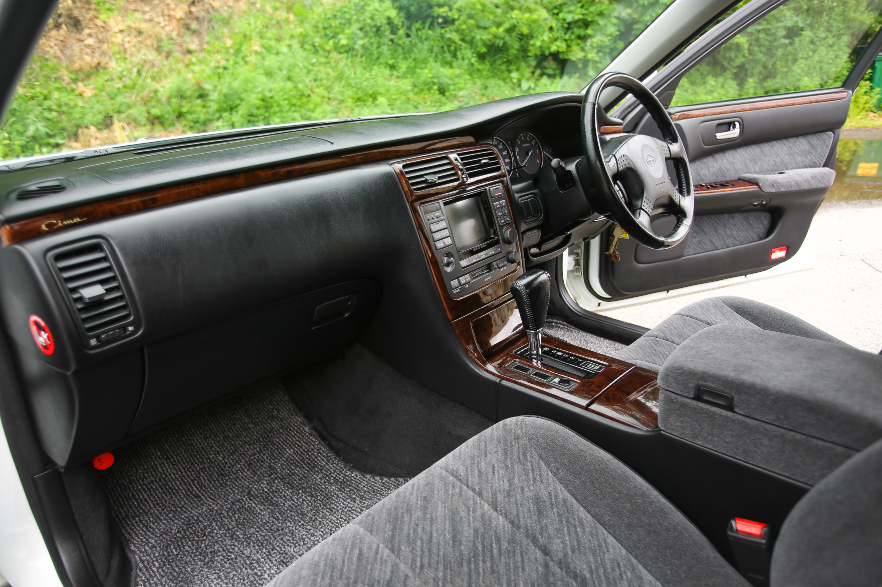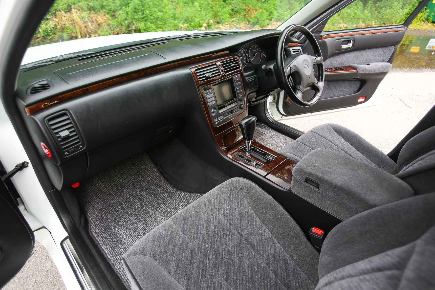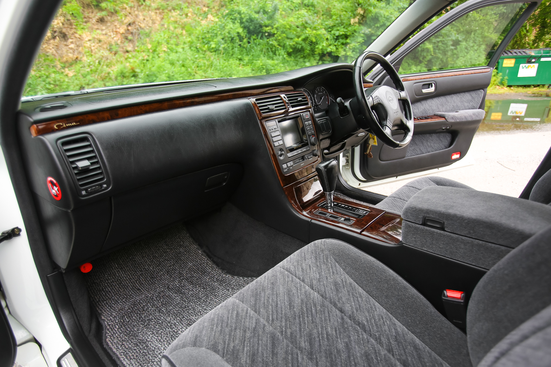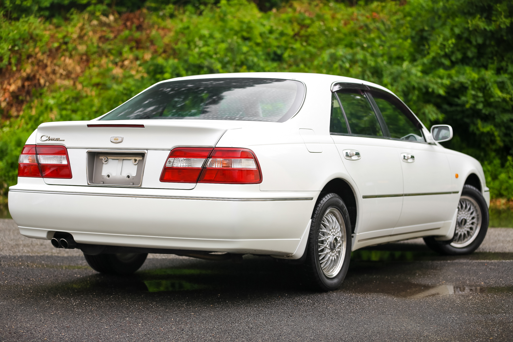 The car has some scratches on the wing. It was purchased from a an older gentlemen in Japan who is the original owner. Customer came to us looking for a white V6 Turbo Cima with low miles.. We got exactly what he wanted and we are excited to bring this beauty for it's new owner in Pennsylvania.
